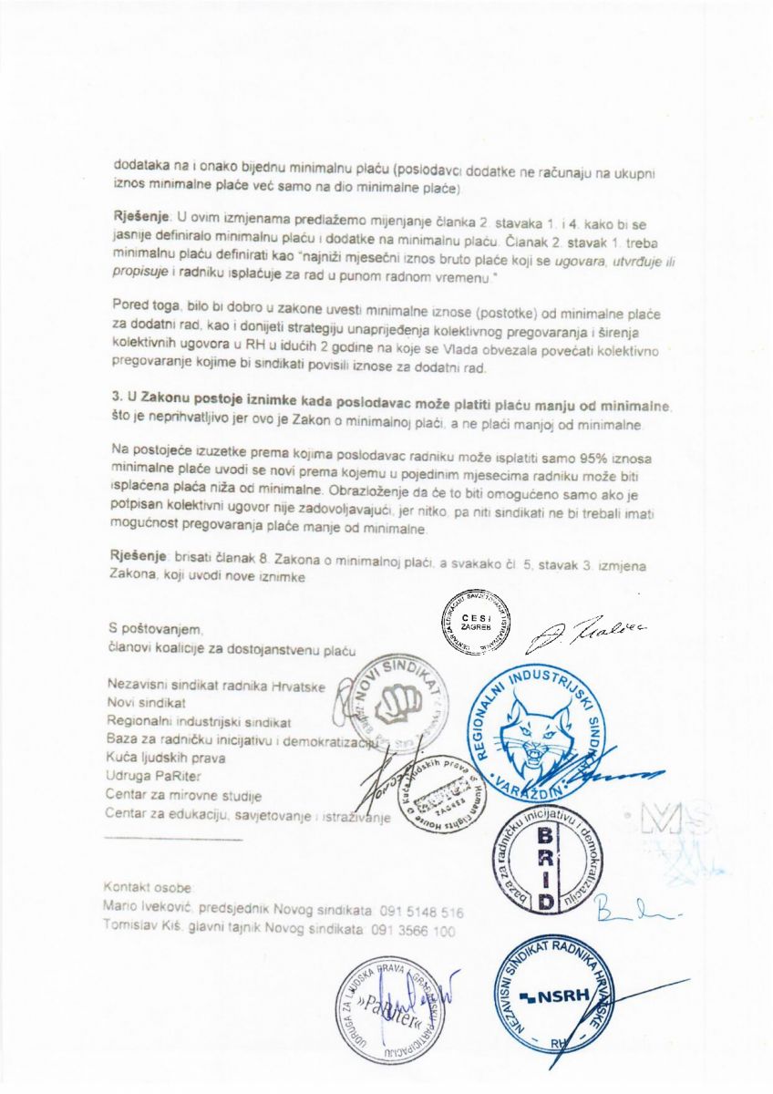 OČITOVANJE NA PRIJEDLOG IZMJENA I DOPUNE ZAKONA O MINIMALNOJ PLAĆI